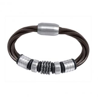 STAINLESS STEEL BRACELET WITH PU & (3 STYLES) S/S BEADS IN ALTERNATE WITH MAGNET LOCK