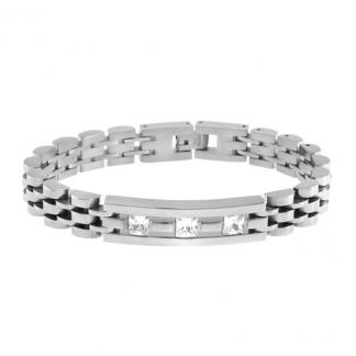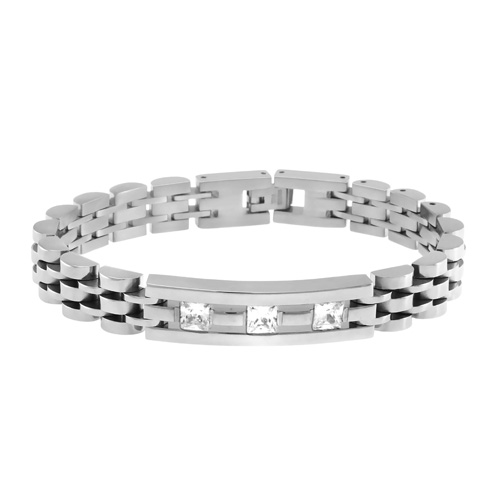 STAINLESS STEEL BRACELET NESTABLE WITH 3 CRYSTALS ALL IN S/S COLOR