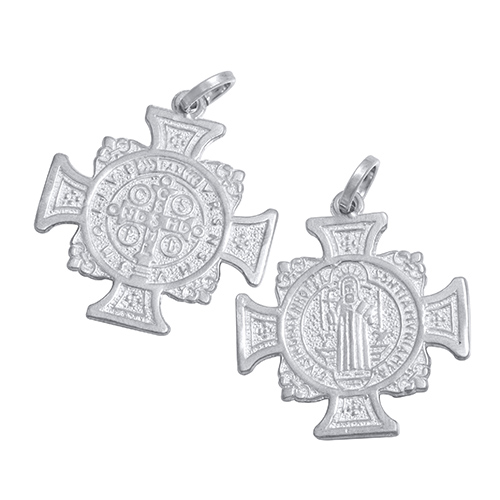 STAINLESS STEEL PENDANT IN CROSS SHAPE WITH SAN BENITO ALL IN STEEL COLOR