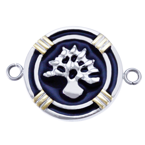 STAINLESS STEEL PENDANT WITH TREE OF LIFE WITH BLACK ENAMEL IN IPG TWO TONE