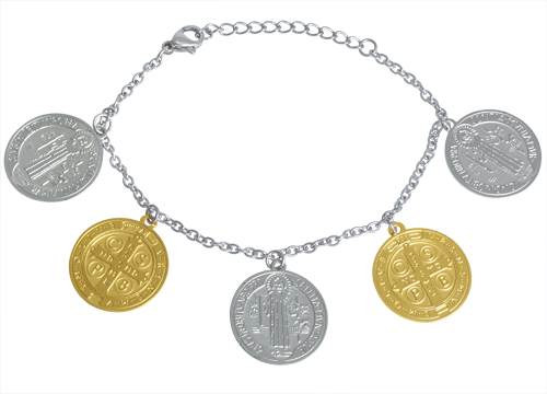 Stainless Steel Bracelet STAINLESS STEEL BRACELET IN IPG 2 TONE WITH 5 PCS OF SAN BENITO LASERED ON ONE SIDE