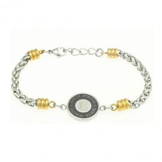 STAINLESS STEEL BRACELET WITH IPG CYLINDRICAL RING WITH SAN BENITO PENDANT IN IPG TWO TONE