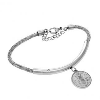 STAINLESS STEEL BRACELET ALL IN STAINLESS STEEL WITH SAN BENITO PENDANT & S/S WIRE