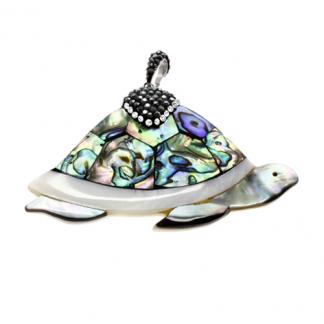 STAINLESS STEEL PENDANT IN TURTLE SHAPE WITH A COLORFUL PAINTING IN THE SHELL WITH BLACK & WHITE CZ IN S/S COLOR IN SHELL