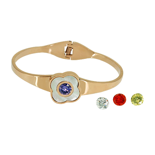STAINLESS STEEL BANGLE IN IPG COLOR WITH FLOWER WITH SHELL WITH CRYSTAL