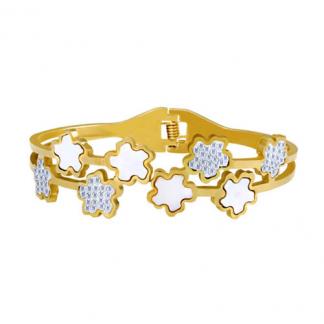 STAINLESS STEEL BANGLE IN IPG COLOR WITH SHELL & CZ IN 8 FLOWERS