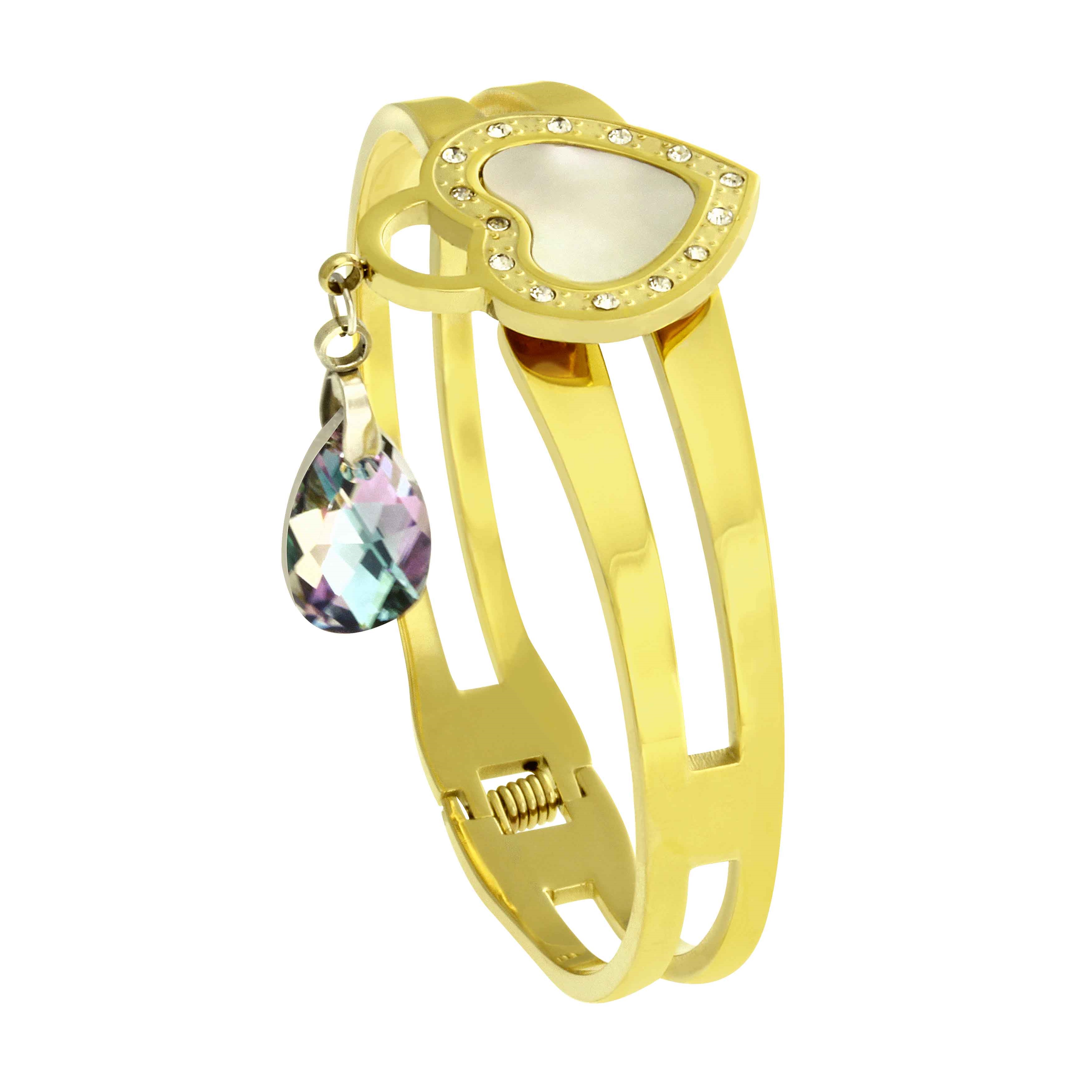 STAINLESS STEEL BANGLEIN IPG COLOR WITH HEART IN SHELL WITH CZ