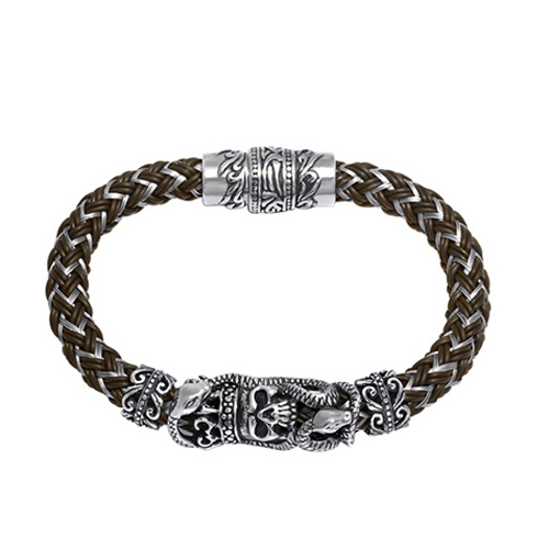 STAINLESS STEEL BRACELET WITH SKULL & SNAKE WITH BROWN PU WITH STEEL WIRE WITH MAGNET LOCK