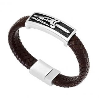 STAINLESS STEEL BRACELET IN BROWN PU WITH SWORD PLATE WITH MAGNET LOCK