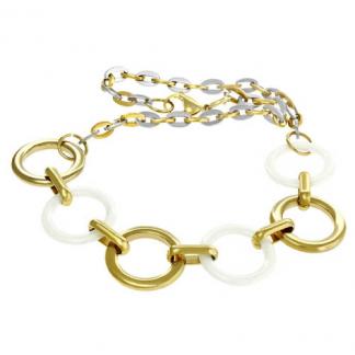STAINLESS STEEL NECKLACE IN S/S & WHITE CERAMIC & IPG 3 TONES WITH CIRCLE RINGS
