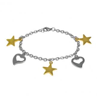 Stainless Steel Bracelet IPG two tone star & heart shape