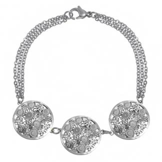 Stainless Steel Bracelet WITH THREE CIRCLES OF FLOWER PATTERN WITH CZ INSIDE