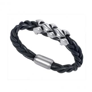 Stainless Steel Bracelet BLACK LEATHER BRACELET WITH S/S PIECE WITH MAGNET LOCK