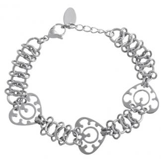 Stainless Steel Bracelet WITH 3 HEART WITH CUT OUT PATTERN WITH OVAL CHARM ALL IN STEEL COLOR