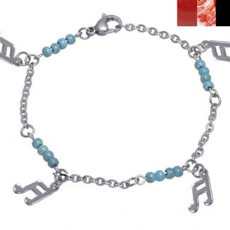 Stainless Steel Bracelet WITH 4 MUSIC NOTE WITH 4 SETS OF TURQUOISE STONE