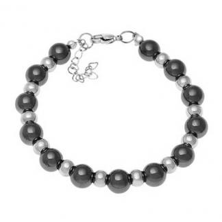 STAINLESS STEEL BRACELET WITH BLACK BEANS AND S/S BEADS