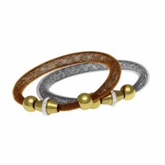 STAINLESS STEEL BRACELET WITH MAGNET LOCK IN IPG WITH CZ BROWN OR SILVER MESH WITH CRYSTAL
