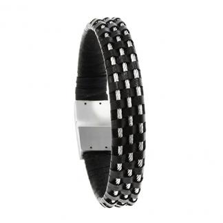 STAINLESS STEEL BRACELET WITH WIRE AND LEATHER