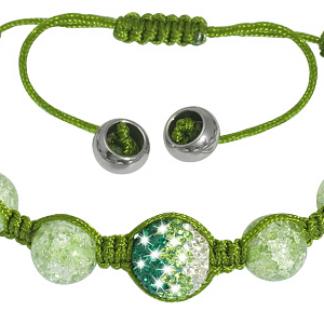 | Stainless Steel Bracelet With 1 pc green crystal bead with cz at centre with outer dia. 12 mm and 8 pcs green crystal beads in outer dia. 10 mm with stainless steel |