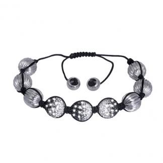 Stainless Steel Bracelet With 3pcs black & white crystal beads in outer dia. 12mm & 6pcs stainless steel beads in outer dia. 12mm