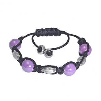 Stainless Steel Bracelet The purple balls in outer dia. 12mm with stainless steel