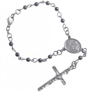 Stainless steel bracelet With Hematite beads with Jesus Cross