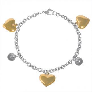 Stainless Steel Bracelet IN IPG 2 TONE WITH 3 IPG HEARTS AND 2 S/S BALLS