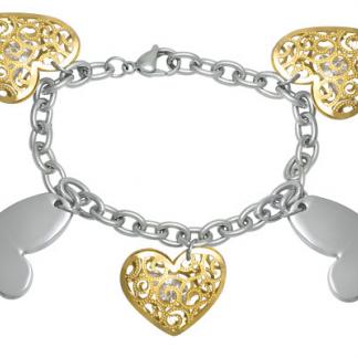 Stainless Steel Bracelet IN IPG 2 TONE WITH 3PCS OF HEART AND 2 PCS OF HEART WITH CZ