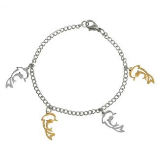 Stainless Steel Bracelet IN IPG 2 TONE WITH 4PCS OF DOLPHINS