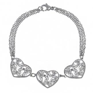 Stainless Steel Bracelet WITH THREE HEARTS WITH CZ INSIDE
