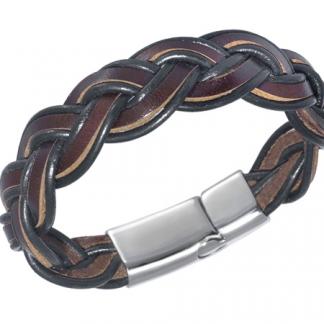 Stainless Steel Bracelet WITH BLACK & BROWN LEATHER IN STRAND/ TWIST STYLE WITH MAGNET LOCK