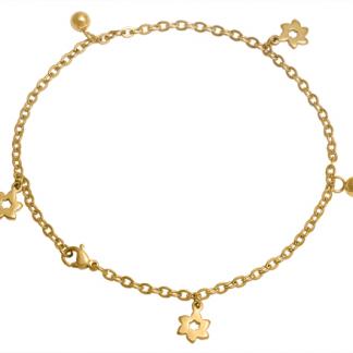 Stainless Steel Bracelet WITH 3 FLOWER & 2 S/S BEADS ALL IN IPG