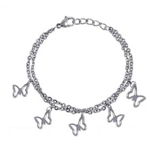 Stainless Steel Bracelet WITH 2 CHAIN WITH 5 CHARM IN BUTTERFLY SHAPE ALL IN STEEL COLOR