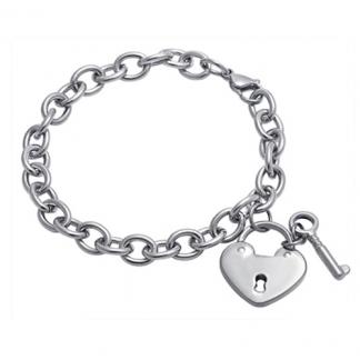 STAINLESS STEEL BRACELET WITH HEART SHAPE KEY LOCK & KEY CHARM ALL IN STEEL COLOR
