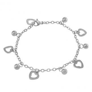 STAINLESS STEEL BRACELET WITH 5 S/S BEADS WITH 4 TREE OF LIFE ALL IN STEEL COLOR