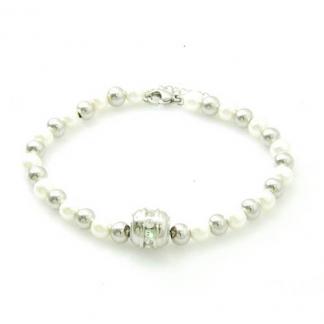 STAINLESS STEEL PEARL BRACELET WITH PEARL COLOR BEADS WITH S/S BEADS WITH STAINLESS STEEL PENDANT WITH CZ