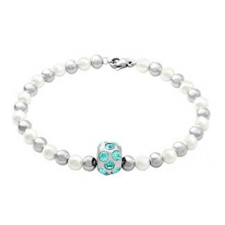 STAINLESS STEEL PEARL BRACELET WITH PEARL COLOR BEADS WITH S/S BEADS WITH STAINLESS STEEL PENDANT WITH CZ