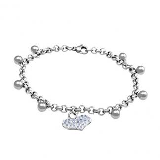 STAINLESS STEEL BRACELET WITH S/S BEADS WITH HEART PENDANT WITH CZ