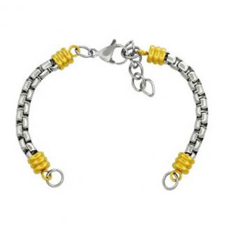 STAINLESS STEEL BRACELET IN IPG TWO TONE WITH IPG CYLINDRICAL RING WITH CHAIN IN THE MIDDLE