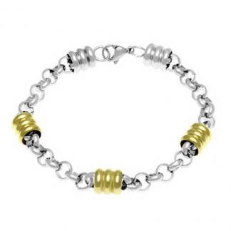 STAINLESS STEEL BRACELET IN IPG TWO TONE WITH 3 IPG CYLINDRICAL RING