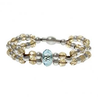 STAINLESS STEEL BRACELET WITH S/S BEADS & YELLOW CRYSTAL BEADS WITH BLUE CRYSTAL WITH S/S MAGNET LOCK