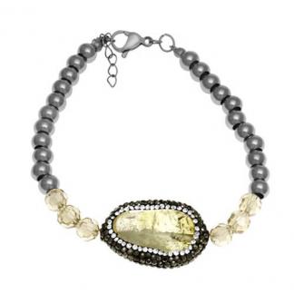 STAINLESS STEEL BRACELET WITH YELLOW STONE WITH BLACK & WHITE CZ WITH 6 CRYSTAL BEADS & S/S BEADS CHAIN