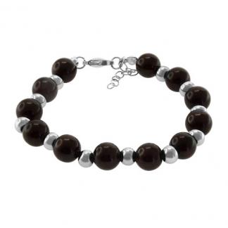 STAINLESS STEEL BRACELET WITH GARNET AND STEEL BALL