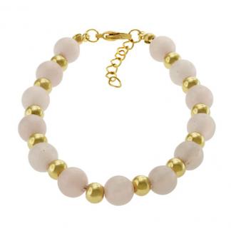STAINLESS STEEL BRACELET WITH STEEL BALL AND THE ROSE QUARTZ STONE ALL IN IPG