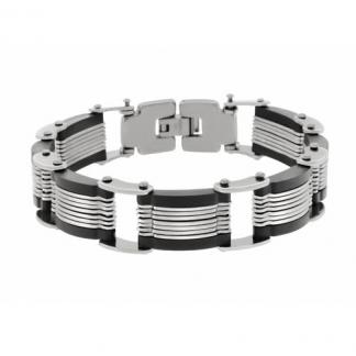 STAINLESS STEEL BRACELET WITH BLACK PU / ALL IN SS COLOR