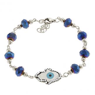 WITH BLUE CRYSTAL BEADS AND ONE HAND IN THE MIDDLE