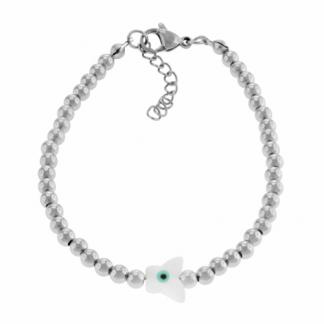 STAINLESS STEEL BRACELET WITH 4MM STEEL BALL AND BUTTERFLY SHAPE SHELL IN THE CENTRE