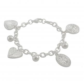 STAINLESS STEEL BRACELET WITH 4 CHARMS IN DIFFERENT DESIGNS AND 3 STEEL BALL IN 8MM. THE HANGING CHARMS SIZES FROM 12MM-18MM WIDTH
