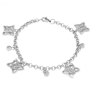 STAINLESS STEEL BRACELET WITH HANGING CHARM OF BUTTERFLY.