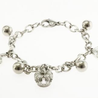 STAINLESS STEEL BRACELET WITH 3 CHARMS AND 4 STEEL BALLS. ALL IN SS COLOR